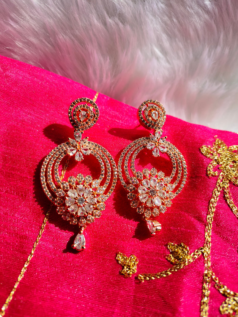 E0860 _Lovely ring shaped flowery design American Diamond studded danglers with beautiful art work.