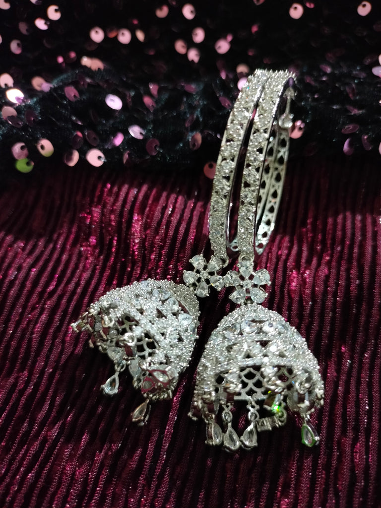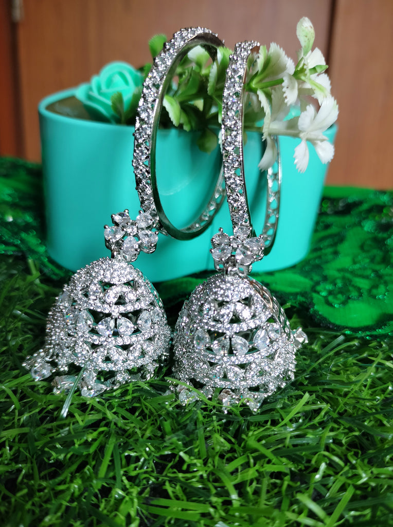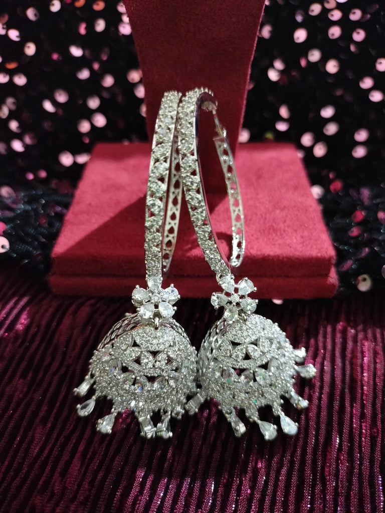 E0864_Ravishing Hoop style American diamond embellished Jumkas with delicate stone work.