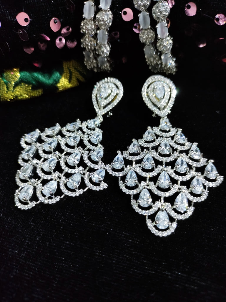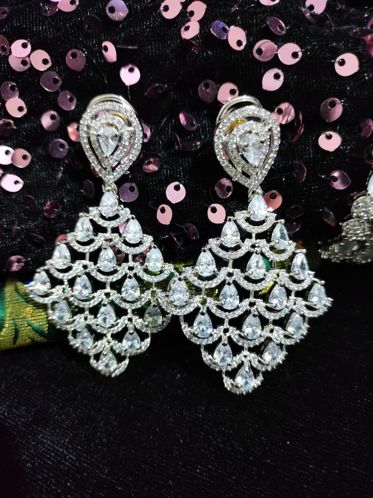 E0865_Elegant style American diamond embellished diamond shaped danglers with delicate stone work.