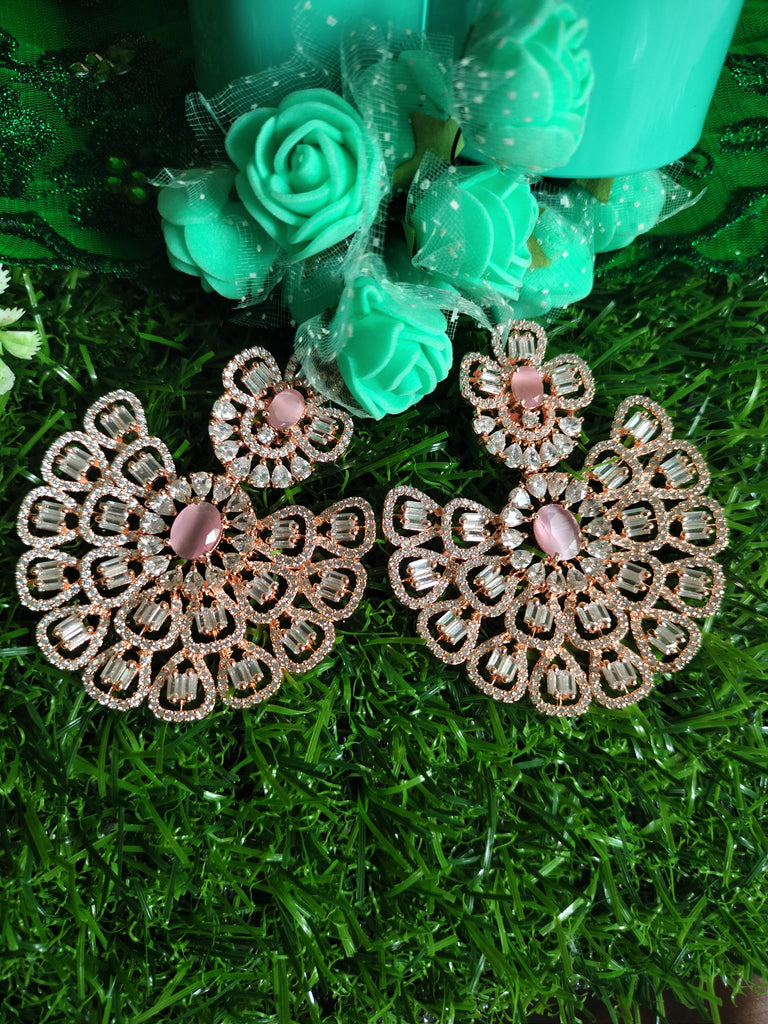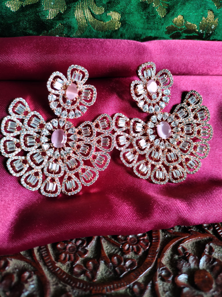 E0866_Ravishing designer American diamond embellished grand danglers with delicate stone work.