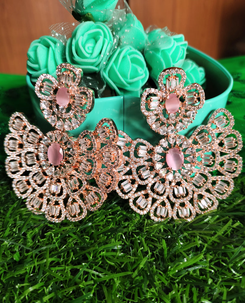 | Material | American diamond stones, copper base metal, rose gold-plated. |