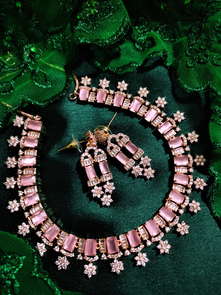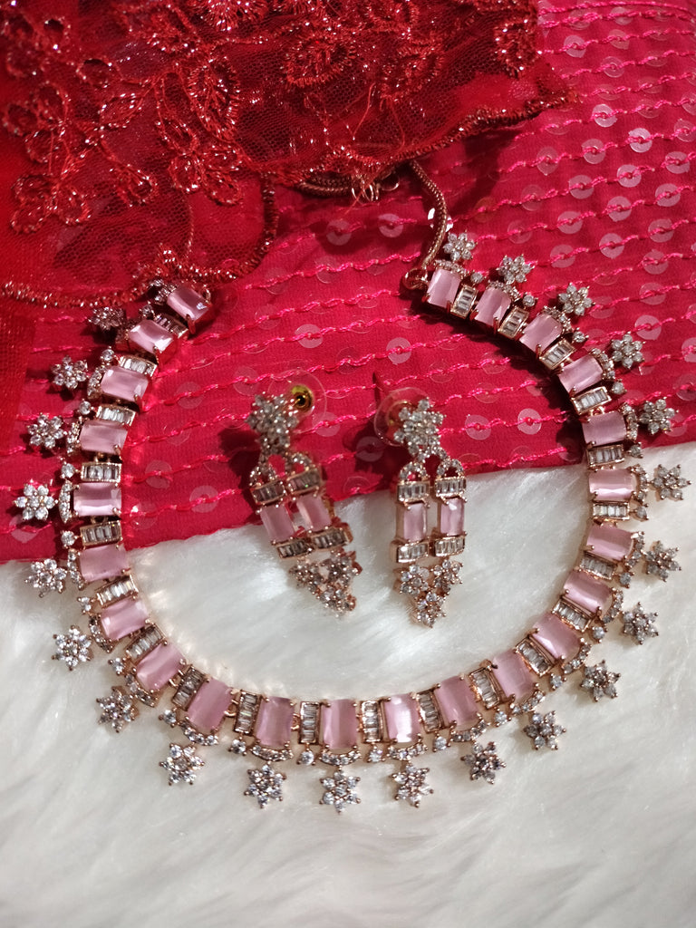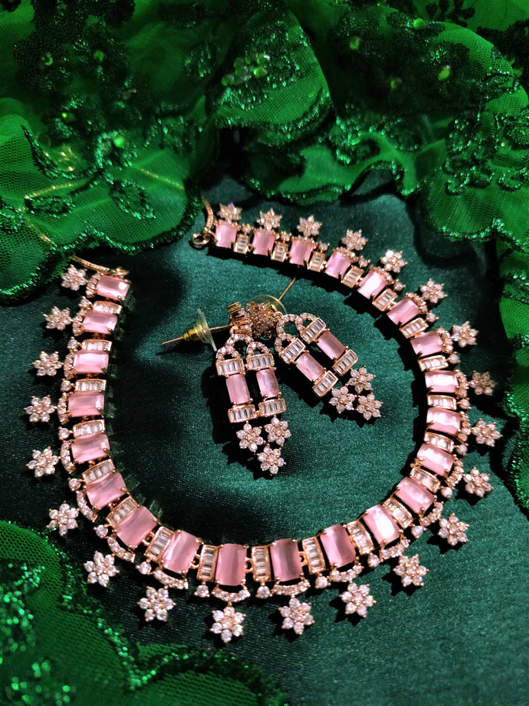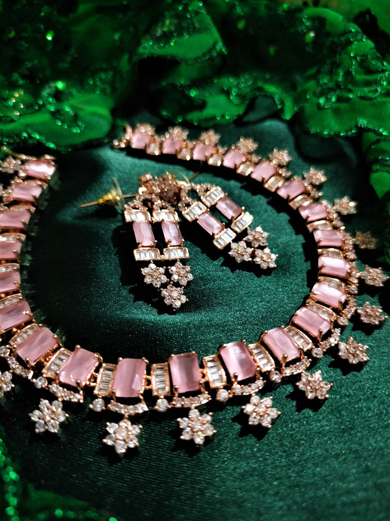 N01121_Lovely designer Rose polished choker necklace embellished with American diamond stones with delicate pink stone work.
