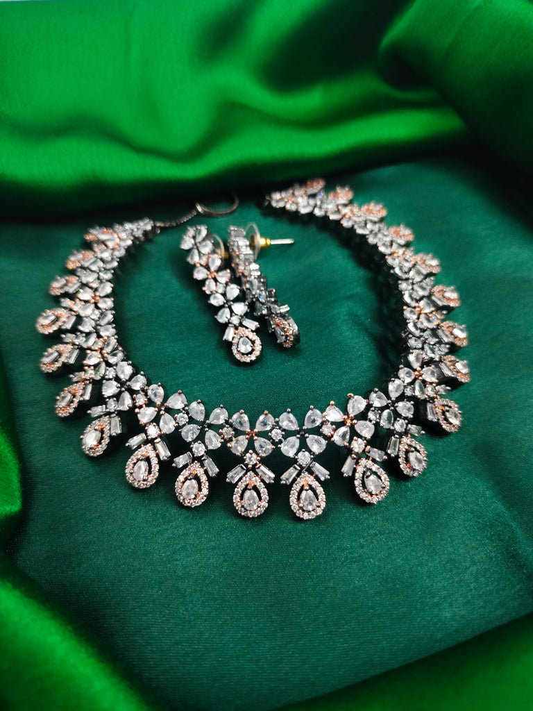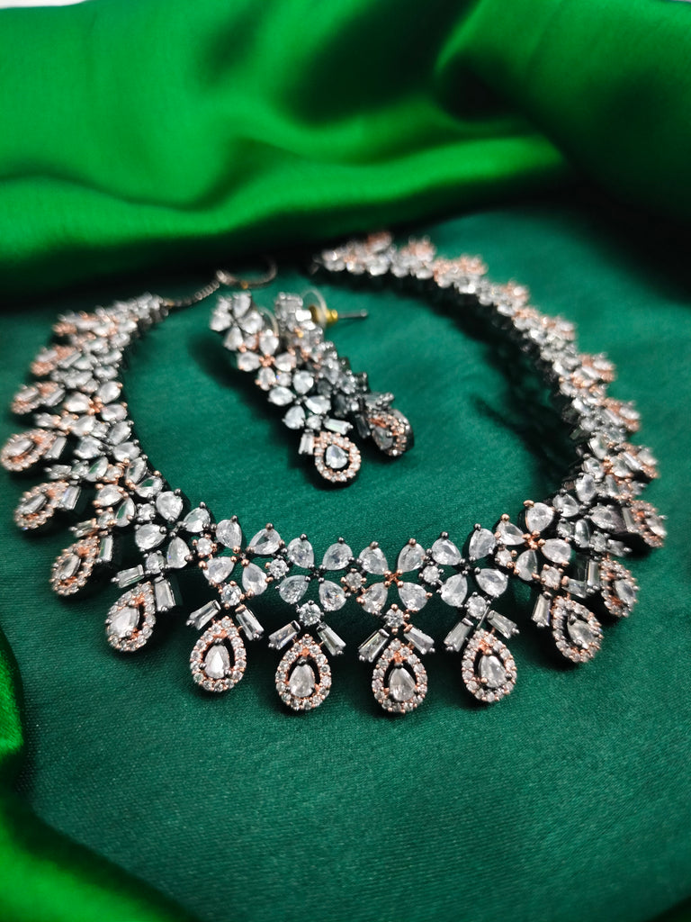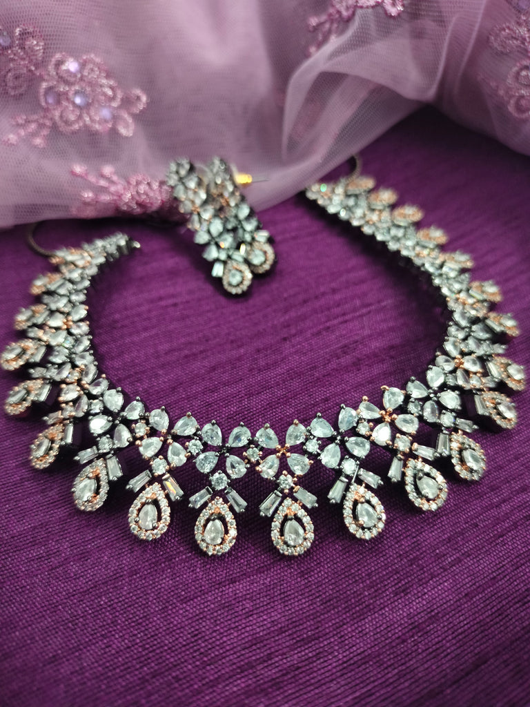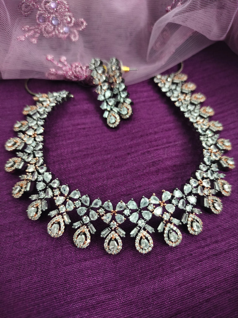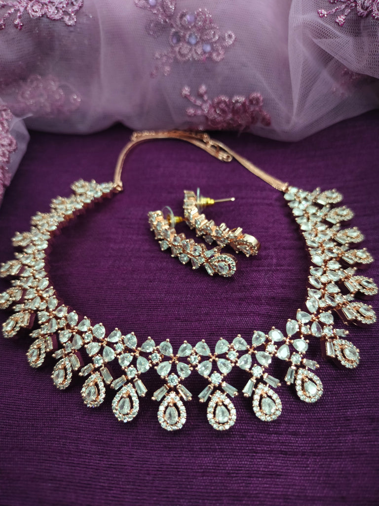 N01154_Grand Lovely designer Rose Gold & Metallic polished choker necklace embellished with American diamond stones with delicate white Stones work.