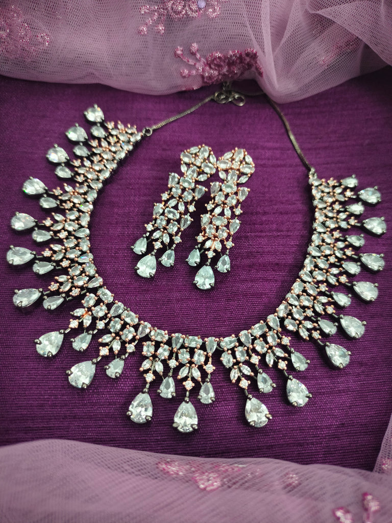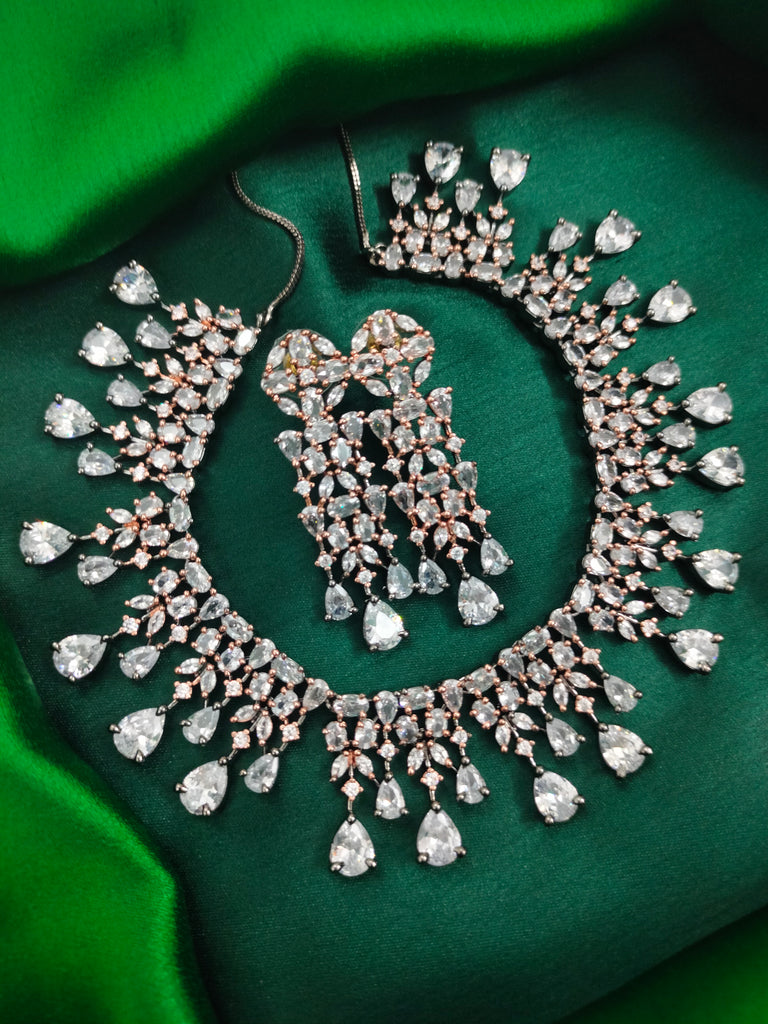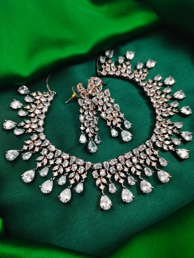N01155_Grand Lovely designer Rose Gold & Metallic polished choker necklace embellished with American diamond stones with delicate white Stones work.