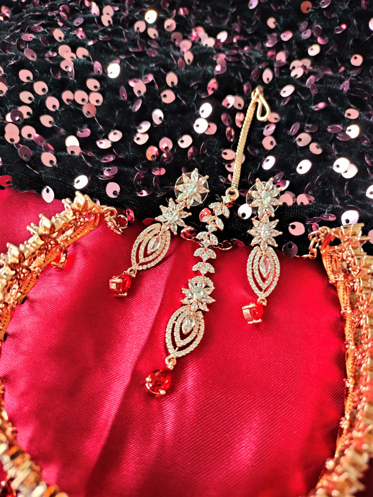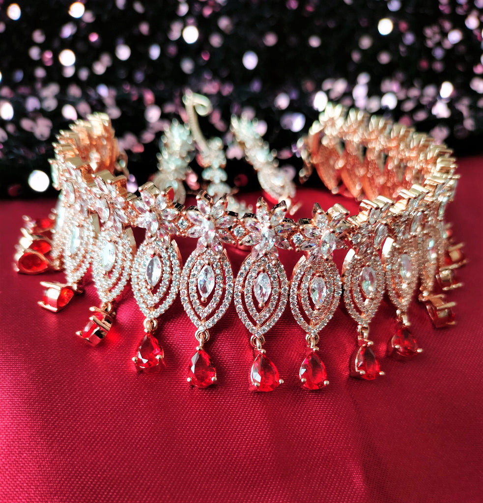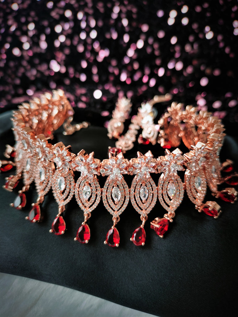 N01220_Elegant design Rose Gold Polished American Diamond choker necklace studded with beautiful dazzling stones with delicate red Stones work.