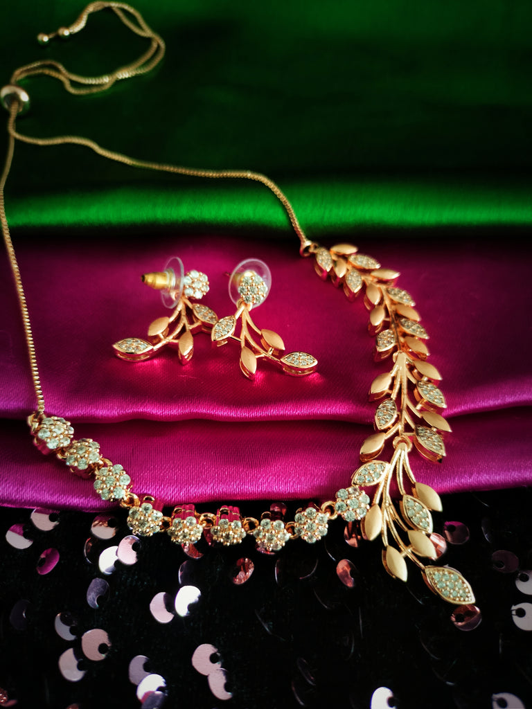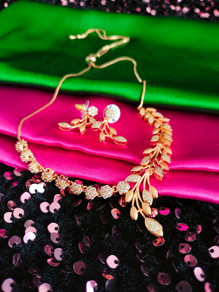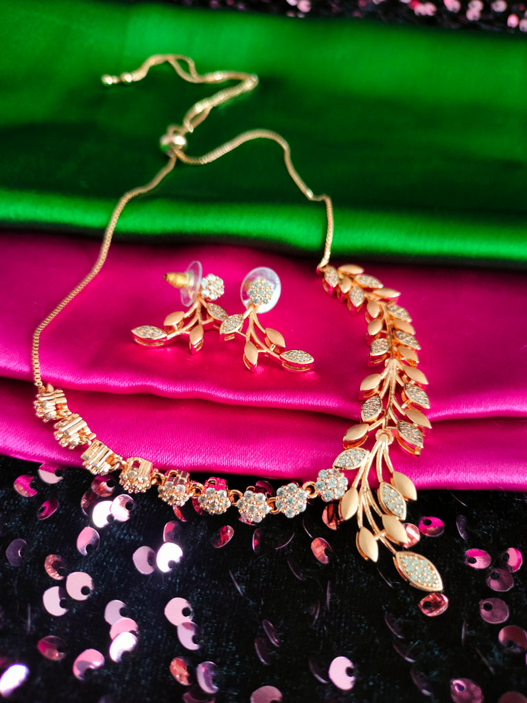 N02009_Gorgeous designer rose gold american diamond embellished necklace set with a touch of white stones.