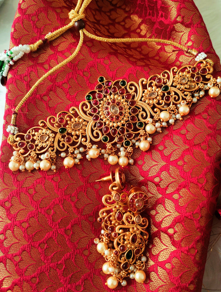 Material | American Diamond stones, gold plated, semi-precious ruby stones, pearls. |