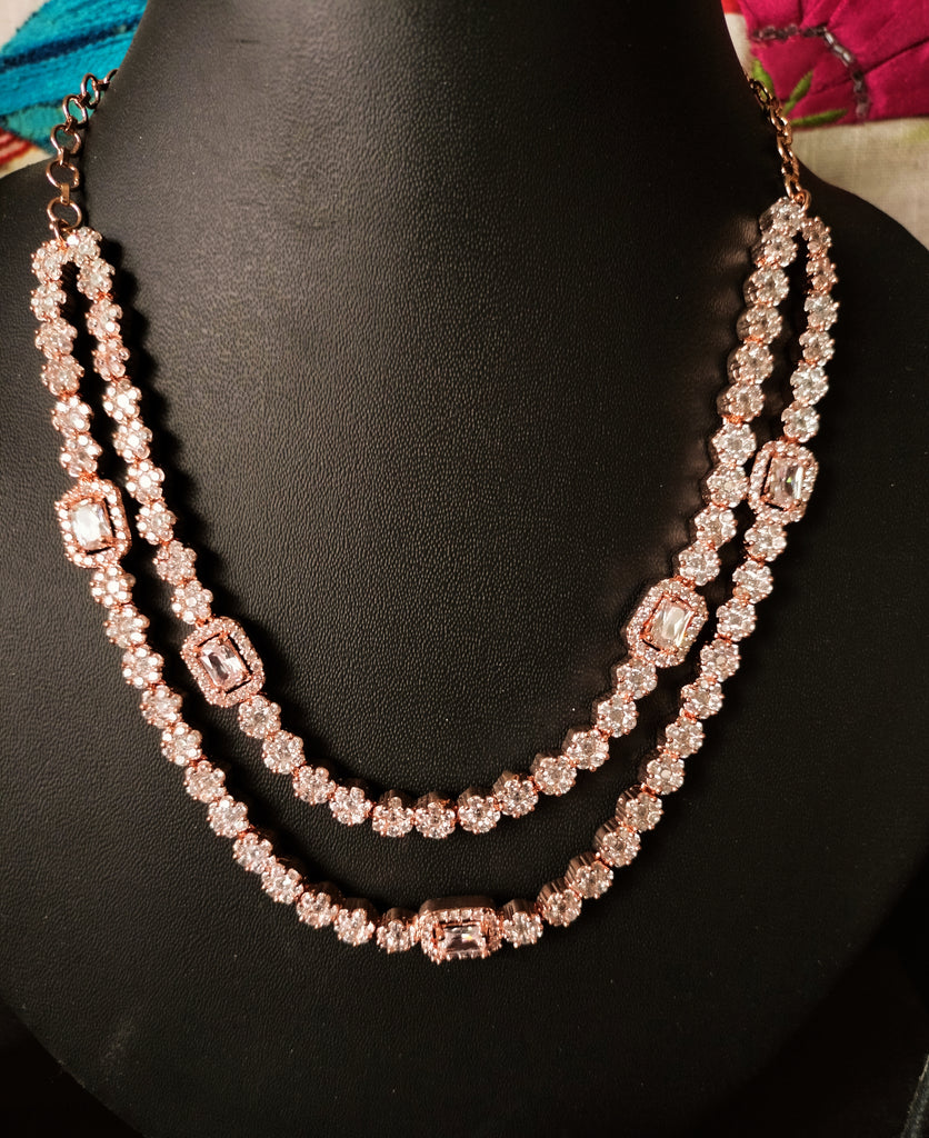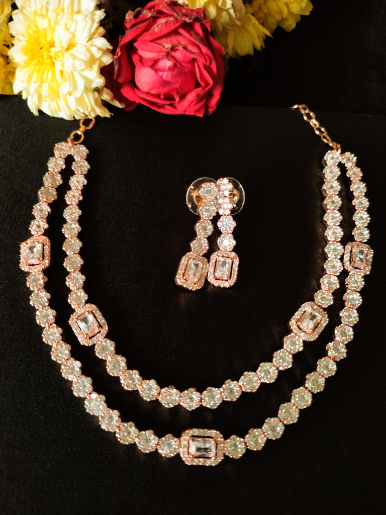 N0367_Classy layered American Diamond stones embellished floral necklace set with delicate craft work.