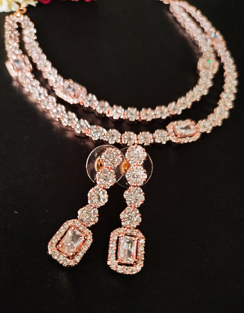 Material  American Diamond stones, rose gold plated.