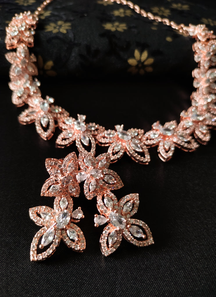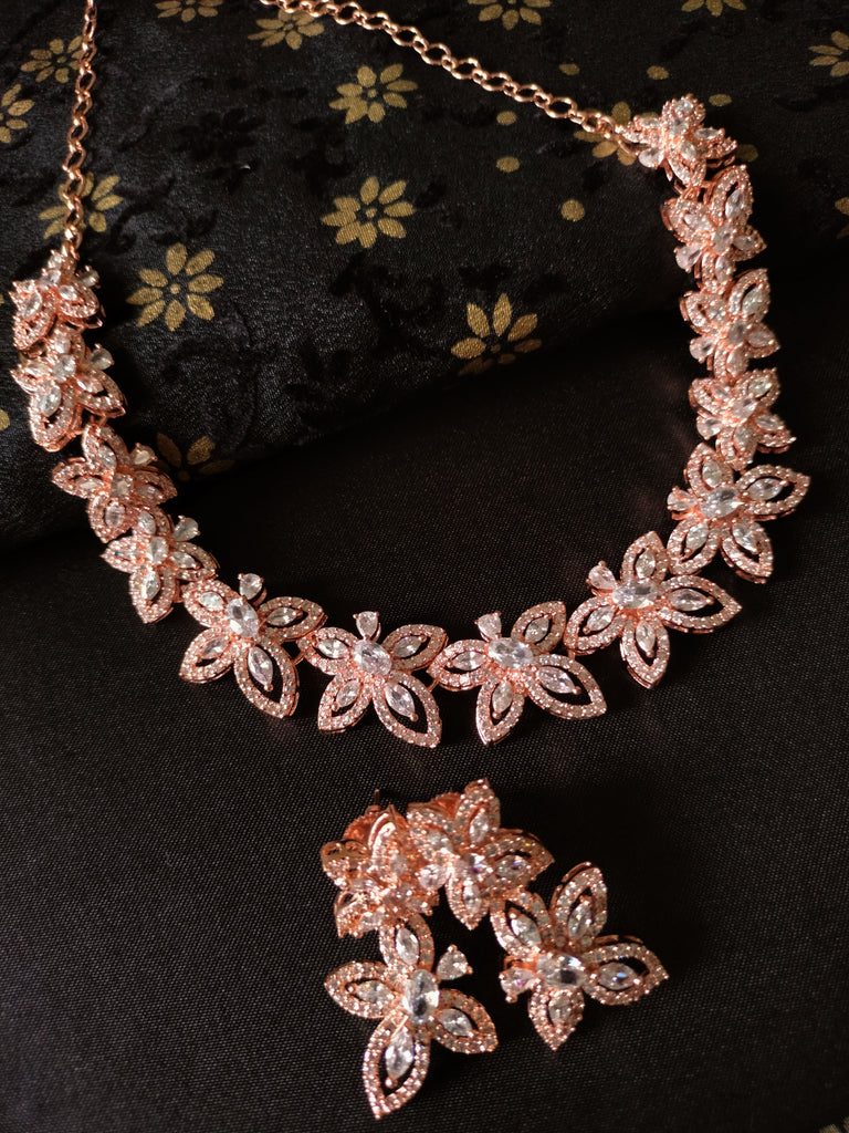 N0372_Gorgeous floral design American Diamond stones studded necklace set.