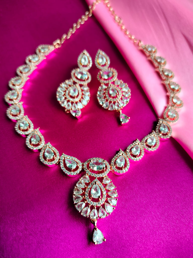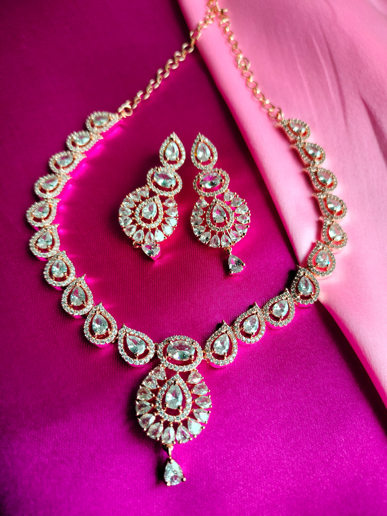 N0486_Elegant designer american diamond studded necklace set with delicate stone work.